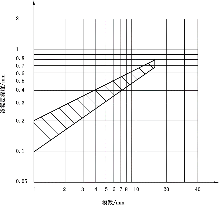图 B.1为渗氮齿轮硬化层深度推荐值。