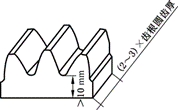 齿形试样应至少含有3个轮齿,齿根以下截面厚度大于或等于1/2齿根圆齿厚,或根据齿轮的模数选取,一般大于10mm,齿宽为齿根圆齿厚的2~3倍,如图1所示。